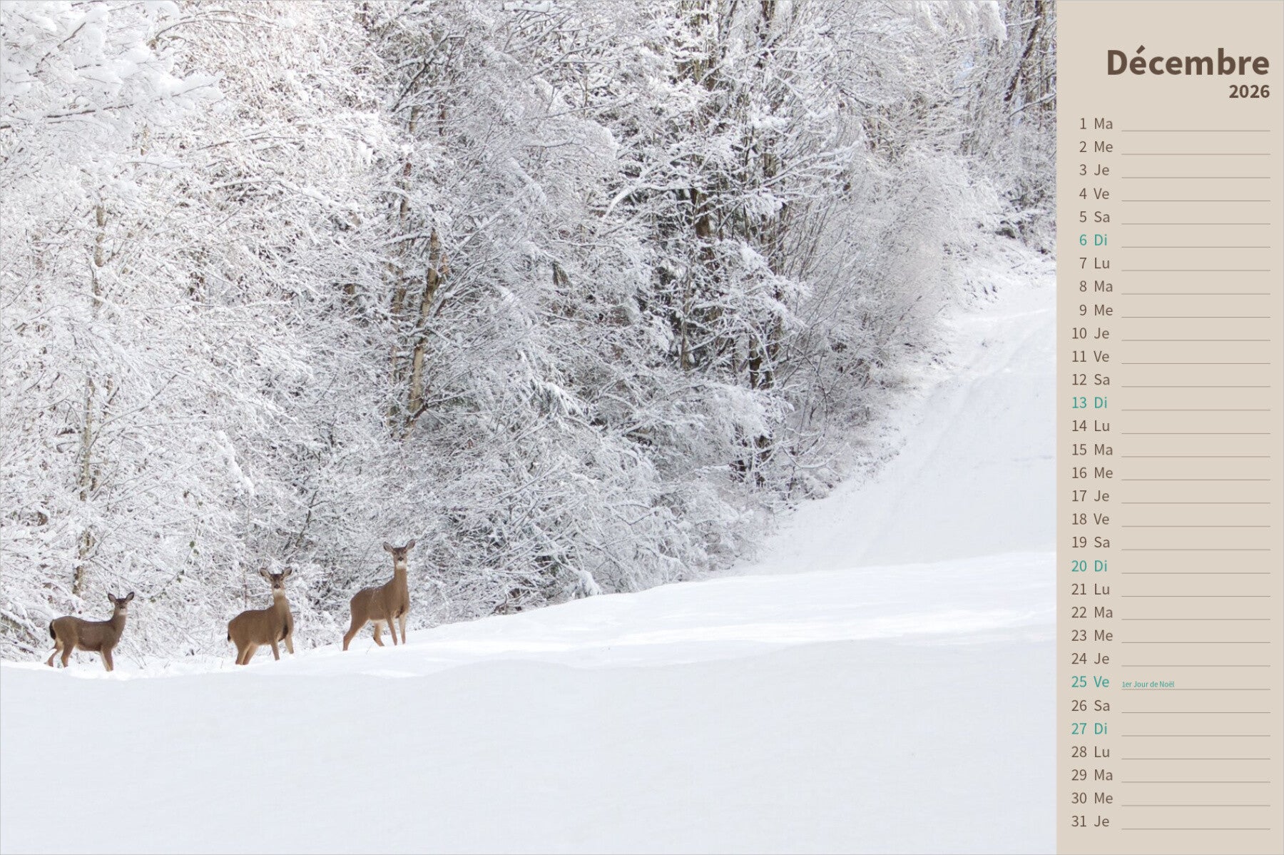 Calendrier 2026 photos animalières Numéro 7 Prix 29 euros